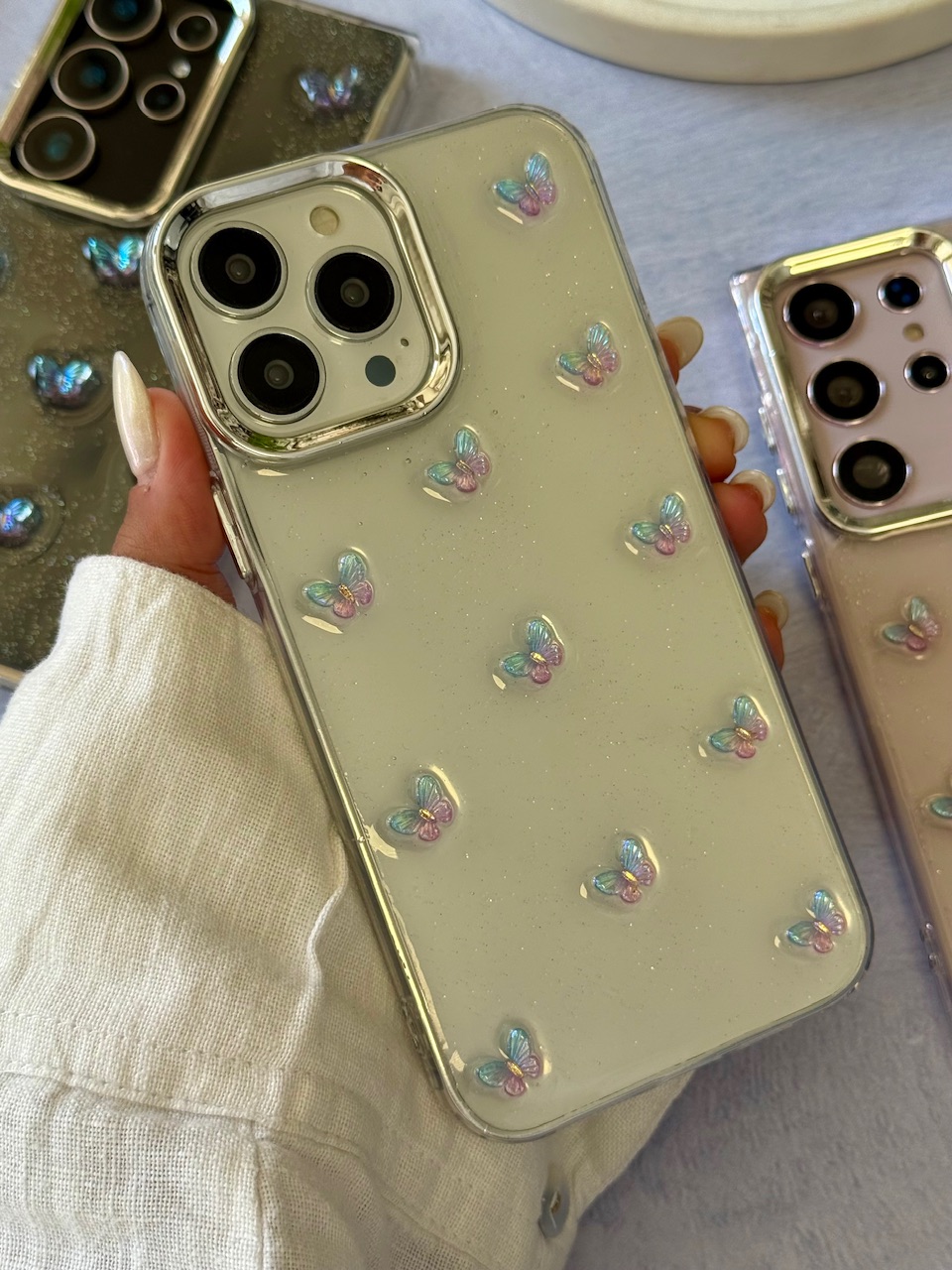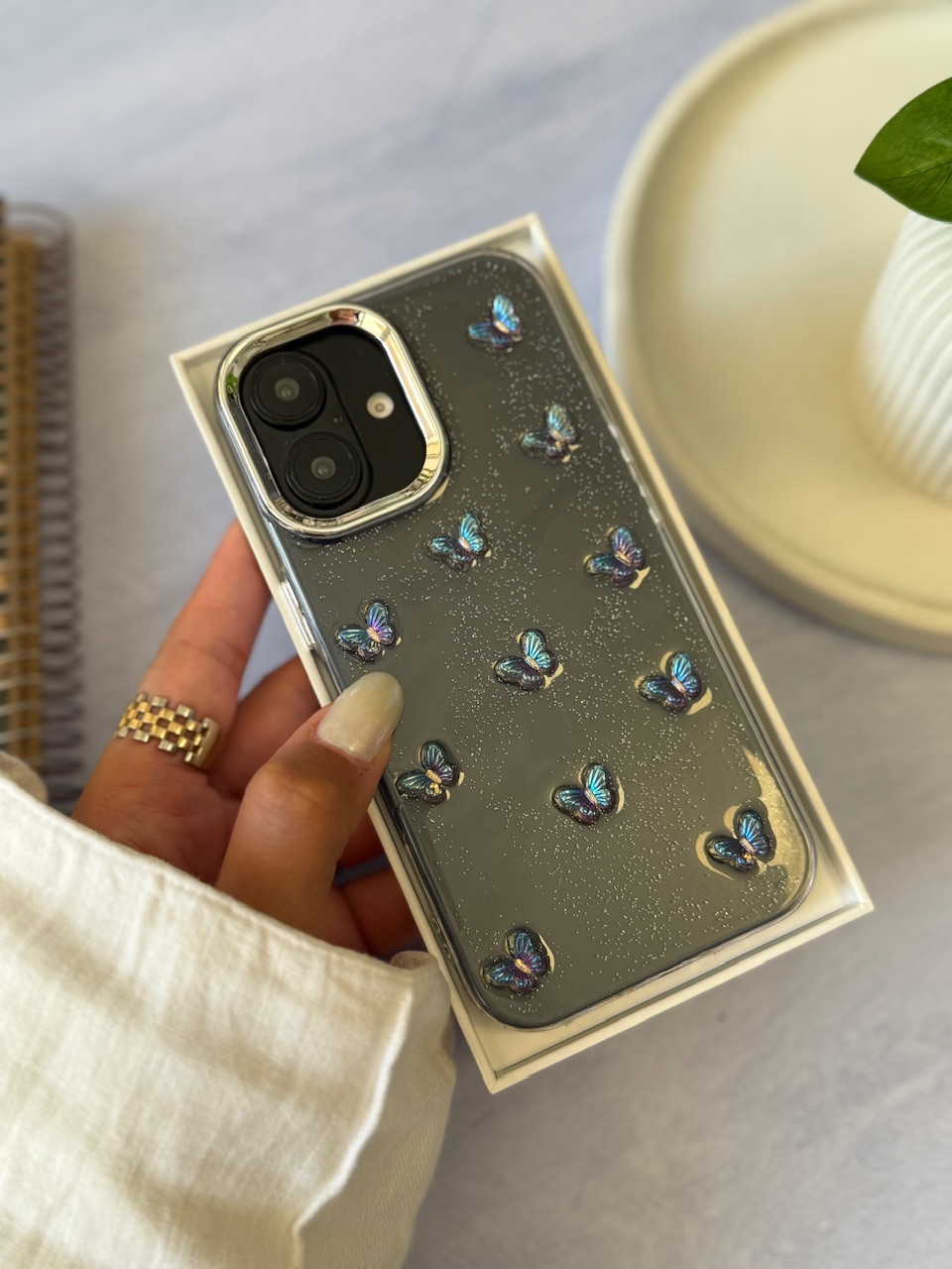 قاب پروانه رنگی زمینه شاینی